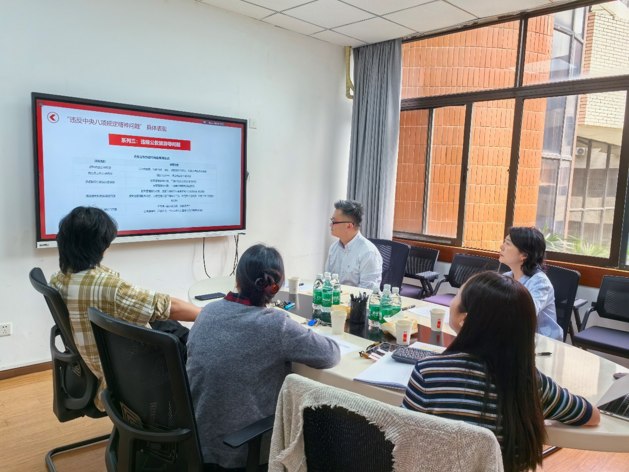 首先,韩媚同志领学“违反中央八项规定精神问题”典型案例,围绕“违规公款吃喝等问题、违规配备使用公车问题、违规公款旅游等问题、违规收送礼金和发放津补贴问题、楼堂馆所违规问题、违规操办婚丧喜庆事宜问题、违规参与高消费娱乐健身活动等问题”等方面典型案例进行了学习。